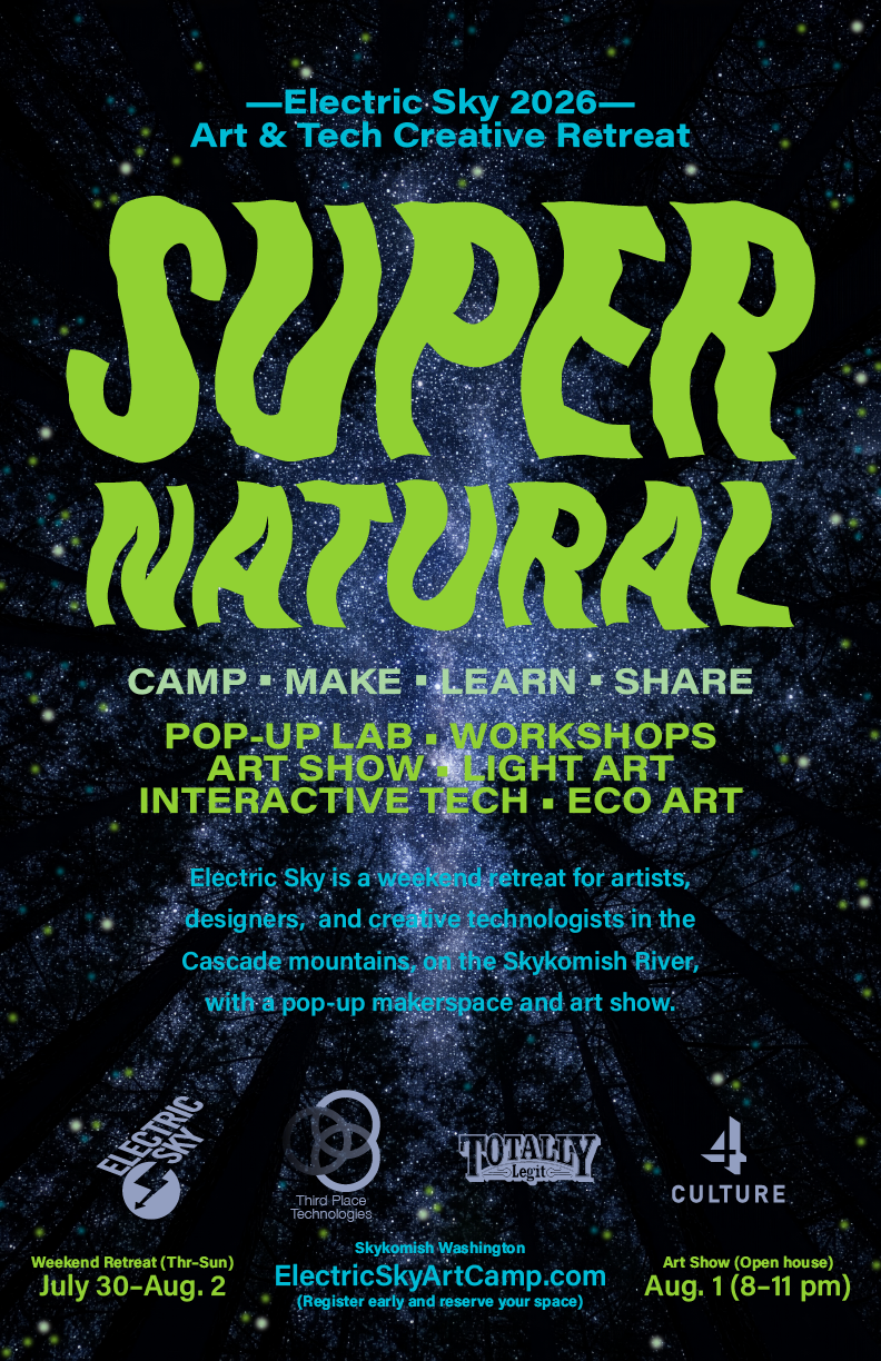 We are pleased to announce our 2026 theme for Electric Sky: SUPER NATURAL. Each year we orient our collaborative installations, workshops, and Saturday night art show around a theme. For 2026, with theme SUPER NATURAL we call on you to venture beyond the familiar, and explore what lies just beyond your human perception.